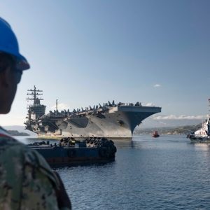 Is it true that USS Eisenhower (docked for repairs in Souda Bay) hit and severely damaged by multiple Houthi ballistic missiles?