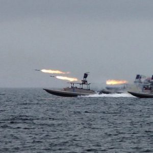 Could Iranian fast boats overwhelm a US carrier group through sheer numbers and destroy it with missiles?