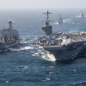 The US navy has at sea relenishment. A carrier group has available supply ships and tankers. While at sea supplies and fuel are transferred. The ships will slow…
