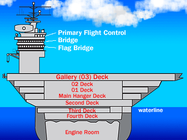 What is located on the bottom floor of an aircraft carrier?