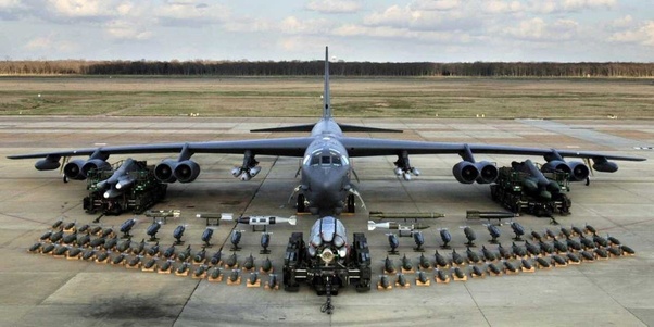 A B-52H can carry a whopping 70 000 lbs / 31 150 kg of fuck-you-and-die, which roughly translates to 32 (!) GBU-15s, and a Tu-95MS can carry 44 000 lbs / 20 000 kg of A-2-G kindness. Which translates to roughly 20 GBU-15s (if he could carry them).